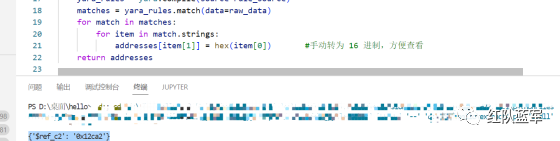 print(yara_scan2(file_data)) #返回的结果为{'$ref_c2': '0x12ca2'}