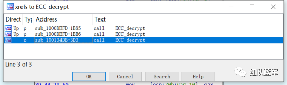 还是一样先定位到特征数据区,由于用的同一个解密函数,所以我们可以直接用 IDA 的热键 X 来交叉引用来寻找第三个,也就是 C2 配置区。