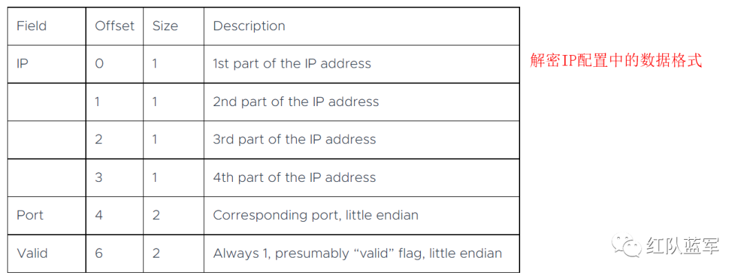 和前面一样,我们使用 xor 函数解密,不同的是这里提取的是 IP ,所以我们需要引用 IP 相关的标准库 socket。对于 IP 数据我们先用 struct.unpack 把 4 字节区域格式化整合出来,再用 socket 库的 inet_ntoa API 把其转换成点分十进制形式。对于端口数据我们直接用 struct.unpack 把 2 字节区域整合出来即可。socket --- 底层网络接口 — Python 3.10.6 文档(https://docs.python.org/zh-cn/3/library/socket.html?highlight=socket#module-socket )