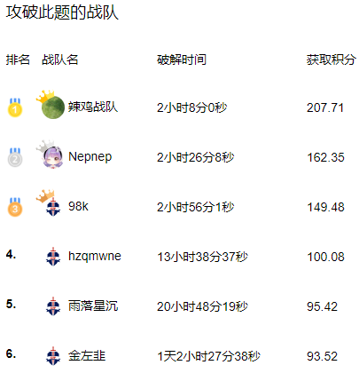 截至发文,本题已有6支战队攻破: