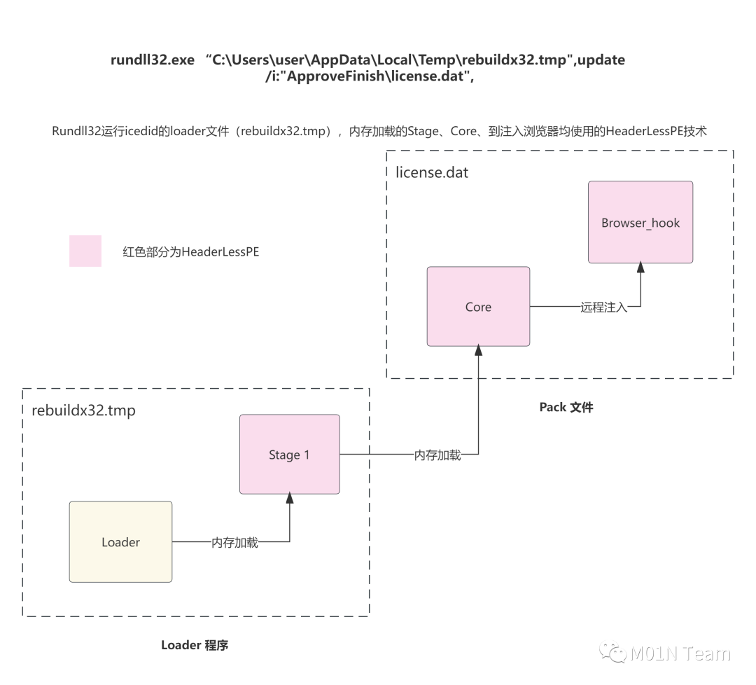 HeaderLessPE最初由Icedid木马使用,该木马的多阶段内存加载和远程注入中都作为主要的技术手段。