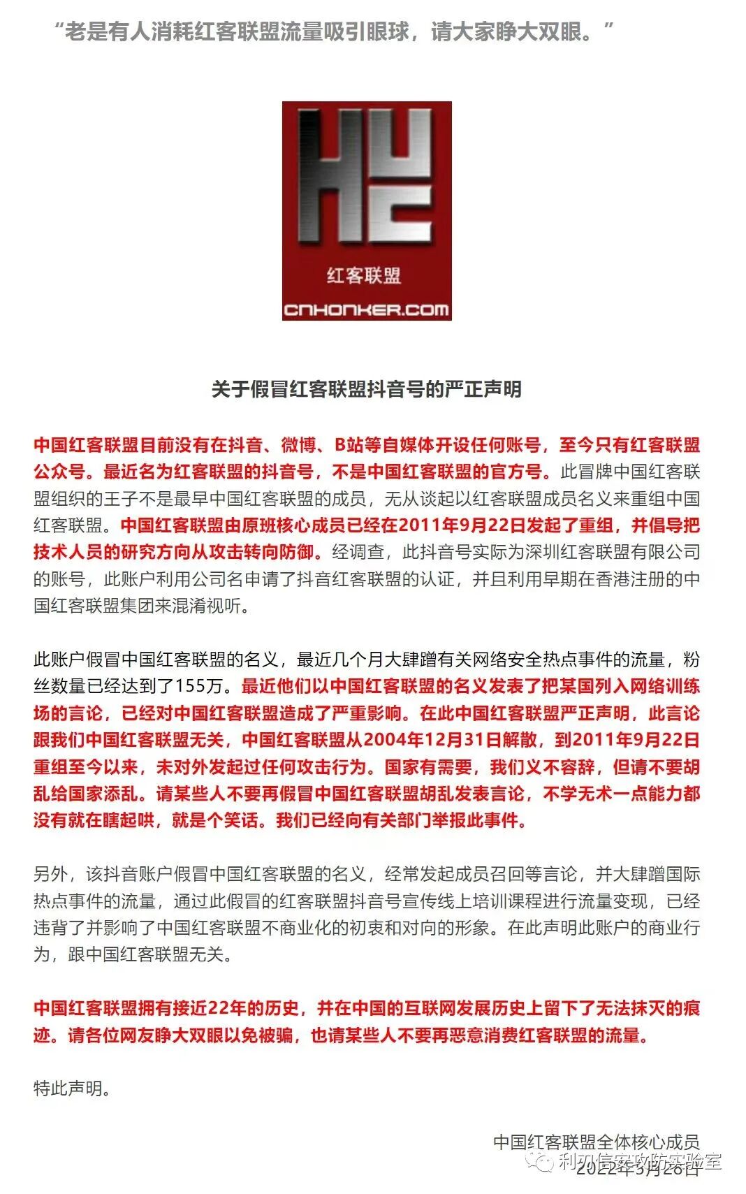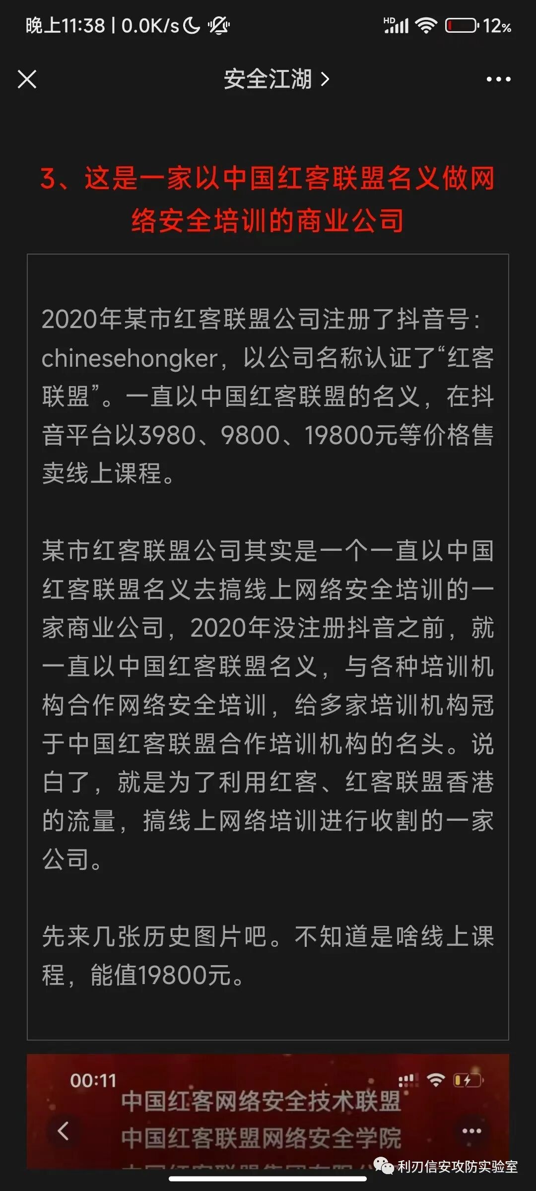 此人号称是红客联盟的红客战队的人,关注我的公众号的安全圈同行基本都知道红客联盟属于什么货色,根据这条视频,一眼假,可以判定是收了红客联盟的钱打广告的!说句实话,看这段视频,十三哥都要笑场了,自己都听不下去了!