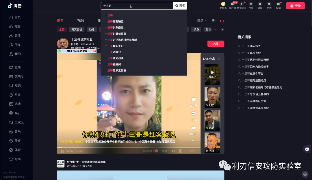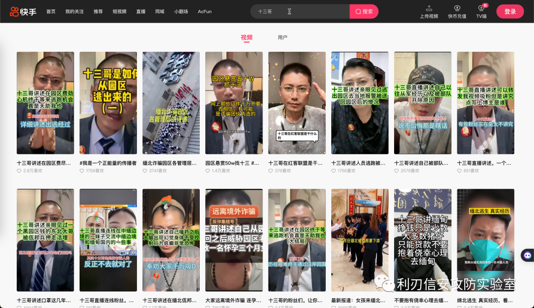 最近,抖音、快手、B站、微信视频号等突然蹿红了反诈网红十三哥,自称是缅北诈骗园区二把手,督导身份,负责给老板编写诈骗盘子剧本,由于良心发现不想诈骗老年人,所以被毒打后趁机逃回国内,现在直播宣传反诈知识。