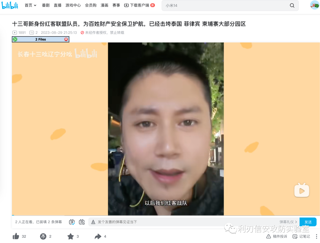 总结一下,反诈网红十三哥的红客联盟红客战队的人设是假的,安全圈应该对红客联盟不陌生,他们什么货色应该一清二楚,除了圈钱还能做其他的?十三哥自述被骗经历前后矛盾,也是假的,综合来看,应该是想利用缅北诈骗事件反诈宣传蹭热度。值得肯定的是,目前为止,十三哥一直宣传缅北的残酷,告诫大家不要去缅北,起到一定程度反诈宣传效果,这些都是不错的。同时,再次说明了东北人口才的优秀,撒谎不眨眼,嘴皮子能把假的说成真的,让大家深信不疑。