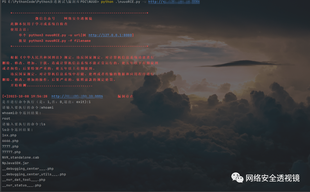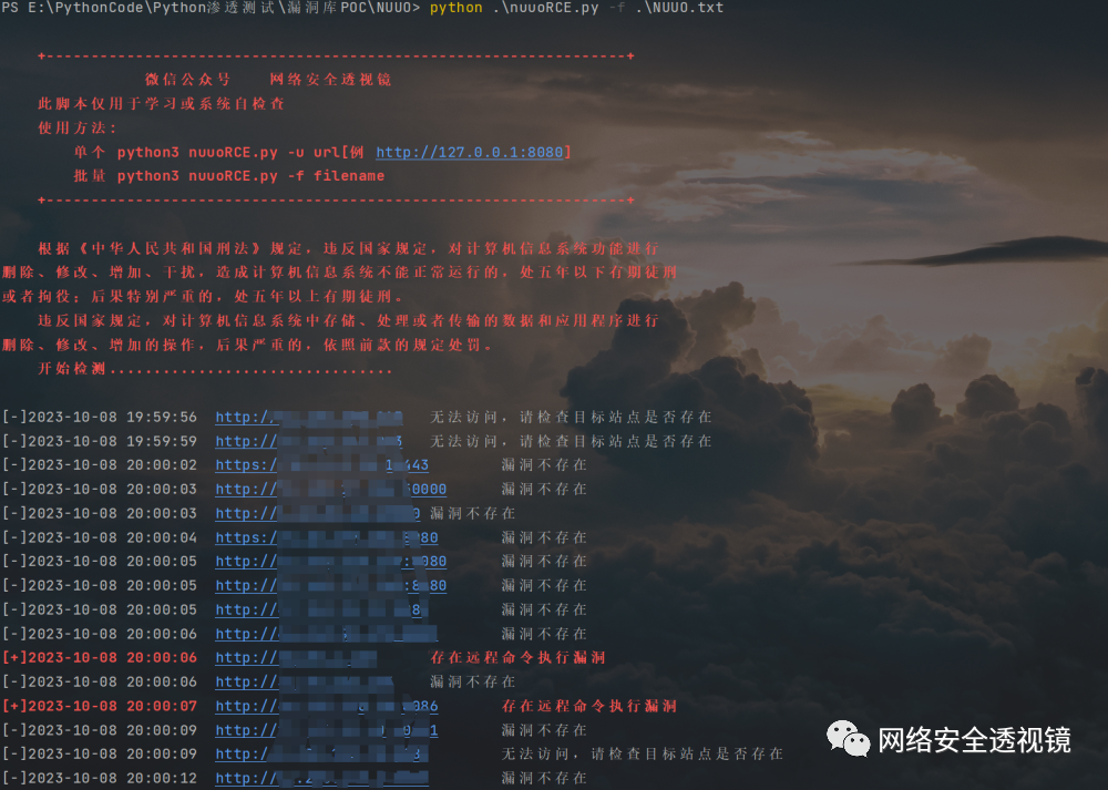 关注微信公众号 网络安全透视镜 回复 20231009 获取批量检测脚本