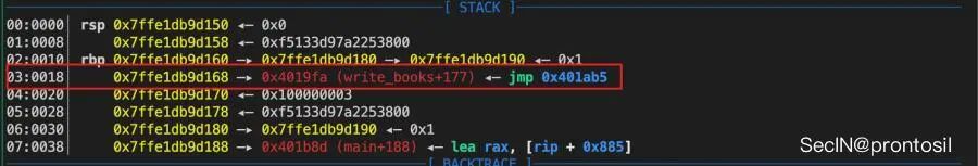 unsigned __int64 rewrite_book(){_QWORD *v0; // rcx__int64 v1; // rdxint idx; // [rsp+Ch] [rbp-14h] BYREFssize_t v4; // [rsp+10h] [rbp-10h]unsigned __int64 v5; // [rsp+18h] [rbp-8h]v5 = __readfsqword(0x28u);puts("\nAt which index of the shelf would you like to rewrite your book?");printf("Index: ");__isoc99_scanf("%d", &idx);getchar();if ( idx > 0 && idx <= 10 && slot[2 * idx - 2] ){--idx;puts("Write me the new contents of your book that is no longer than what it was before.");v4 = read(0, slot[2 * idx], books[idx].size); // 从标准输入读取books[idx].size个字节到slot[2*idx]中v0 = (__int64 *)((char *)slot[2 * idx]->buf + v4);v1 = qword_4040D8;*v0 = author_signature;v0[1] = v1;puts("Your book has been rewritten!\n");}else{puts("Invaid slot!");}return v5 - __readfsqword(0x28u);}