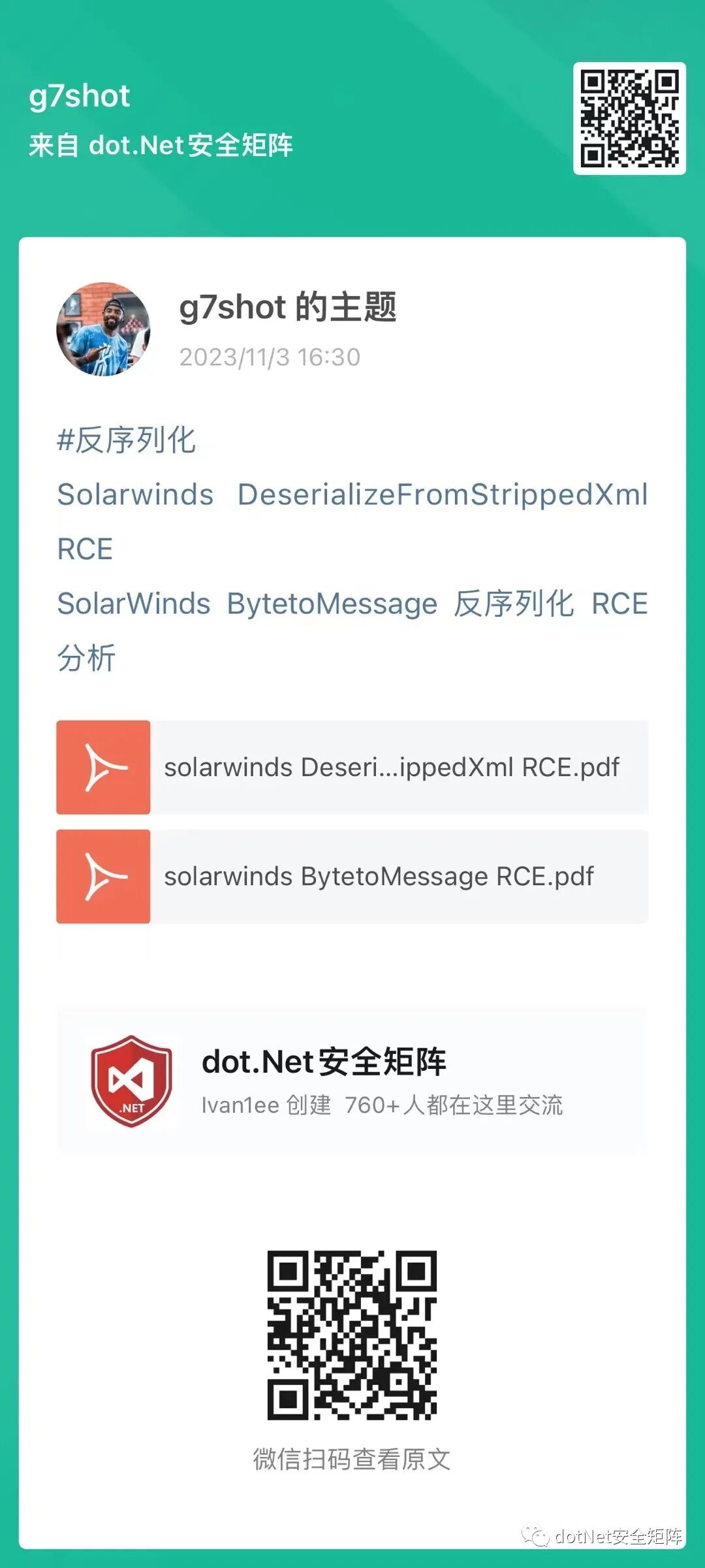 为了更好地应对基于.NET技术栈的风险识别和未知威胁,dotNet安全矩阵星球从创建以来一直聚焦于.NET领域的安全攻防技术,定位于高质量安全攻防星球社区,也得到了许多师傅们的支持和信任,通过星球深度连接入圈的师傅们,一起推动.NET安全高质量的向前发展。经过运营团队成员商议一致同意给到师傅们最大优惠力度,只需129元就可以加入我们。