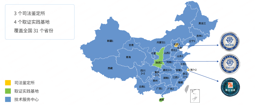 正因如此,奇安信数字司法服务在全国范围内布局了31个取证技术服务网点,其能够快速有效、合法合规地搜集和分析电子数据,尤其在应对涉及多地的案件时,能够保证调度的及时性和高效性,帮助客户合法合规、快速高效固定电子数据,防止数据的灭失和破坏。