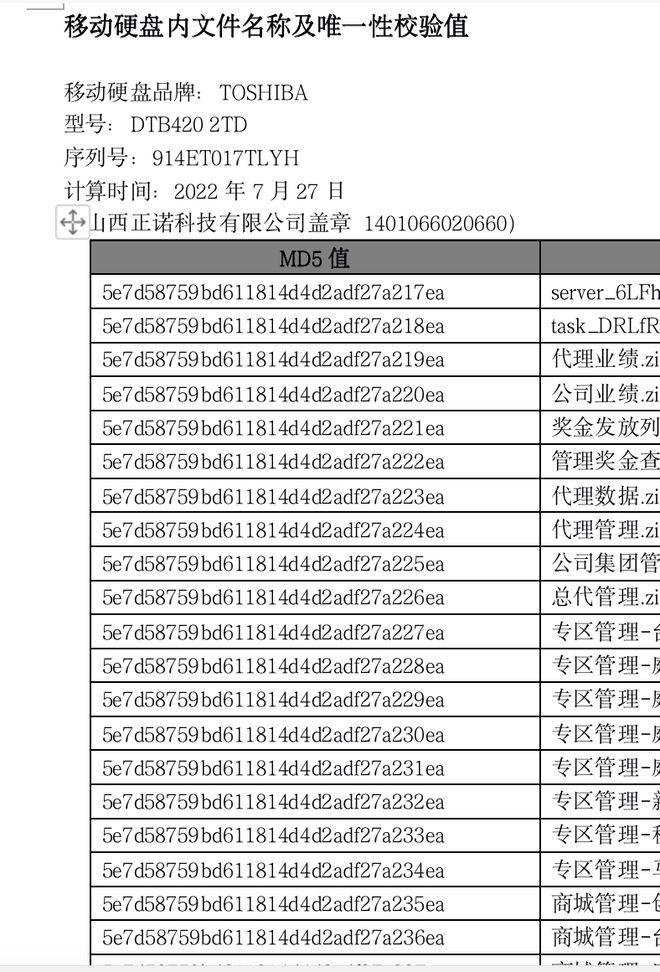 另一方面,鉴定意见中存在基础性的专业知识错误,并涉嫌伪造证据。山西正诺在执行数据采集、固定、存放、搭建、镜像恢复过程中,未依据详细规定及国家标准进行操作,未按程序计算并记录哈希值。特别是在从服务器镜像恢复的36个文件中,第2个至第35个文件的MD5校验值异常地呈现连号,明显涉嫌伪造。