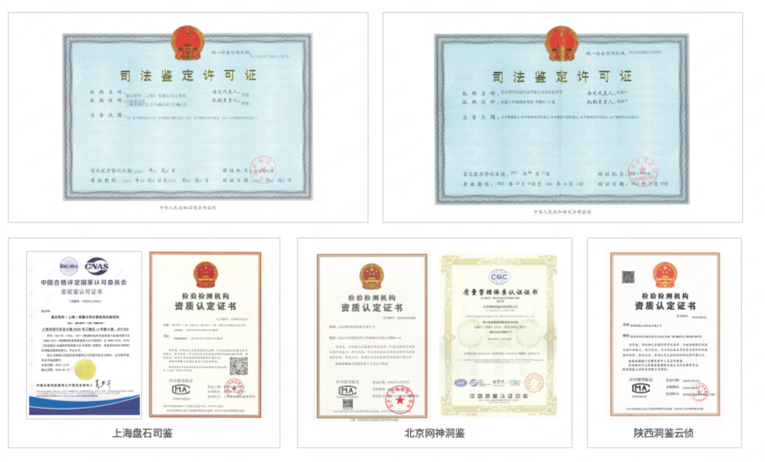 奇安信集团旗下有北京和上海两家司法鉴定所:北京网神洞鉴科技有限公司司法鉴定所与盘石软件(上海)有限公司计算机司法鉴定所,其中,上海所是上海第一家通过 CNAS 认证认可的民营计算机类司法鉴定机构。北京所与上海所均通过了CMA资质认定,是目前国内少数能够通过自主研发软件进行取证与分析的电子数据司法鉴定机构,具有独立的实验室场所,其中包括:案件受理区、数据恢复区、手机取证区、计算机取证区、屏蔽室、无尘工作间和物证室,并配备多种国内外先进的技术设备检验及辅助设备。经过多年的时间积累和发展,现拥有一批胜任鉴定工作的专业技术人员,以专业的技能和丰富的经验,来开展电子数据司法鉴定工作。开展的鉴定服务范围包括:电子数据司法鉴定、计算机证据固定和获取、手机终端取证与分析、数据恢复、密码破解以及涉及电子设备的民事调查等。