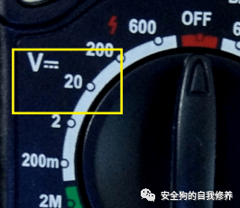 将万用表旋转设置为直流电压tage 如 V (20)(考虑 20 v 范围以下的设备),如下图所示: