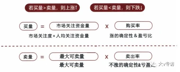 (11)强势股涨跌逻辑:群体博弈 交易的本质是群体博弈!市场潜在买入者的钱的数量和买入倾向与场内筹码数量和卖出倾向对比,前者大就买入,反之卖出。