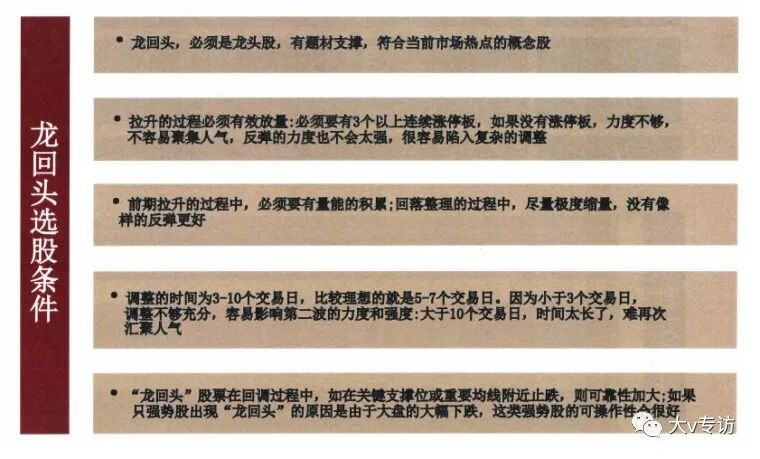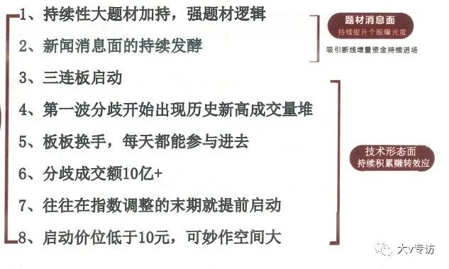 龙头的基本概念,即政策、资金、人气、市场、技术指标的多方面共振走高走强的票,带动板块走强的票,称为龙头。 龙头战法正文: (1)短线核心要素:热点题材+赚钱效应+高辨识度