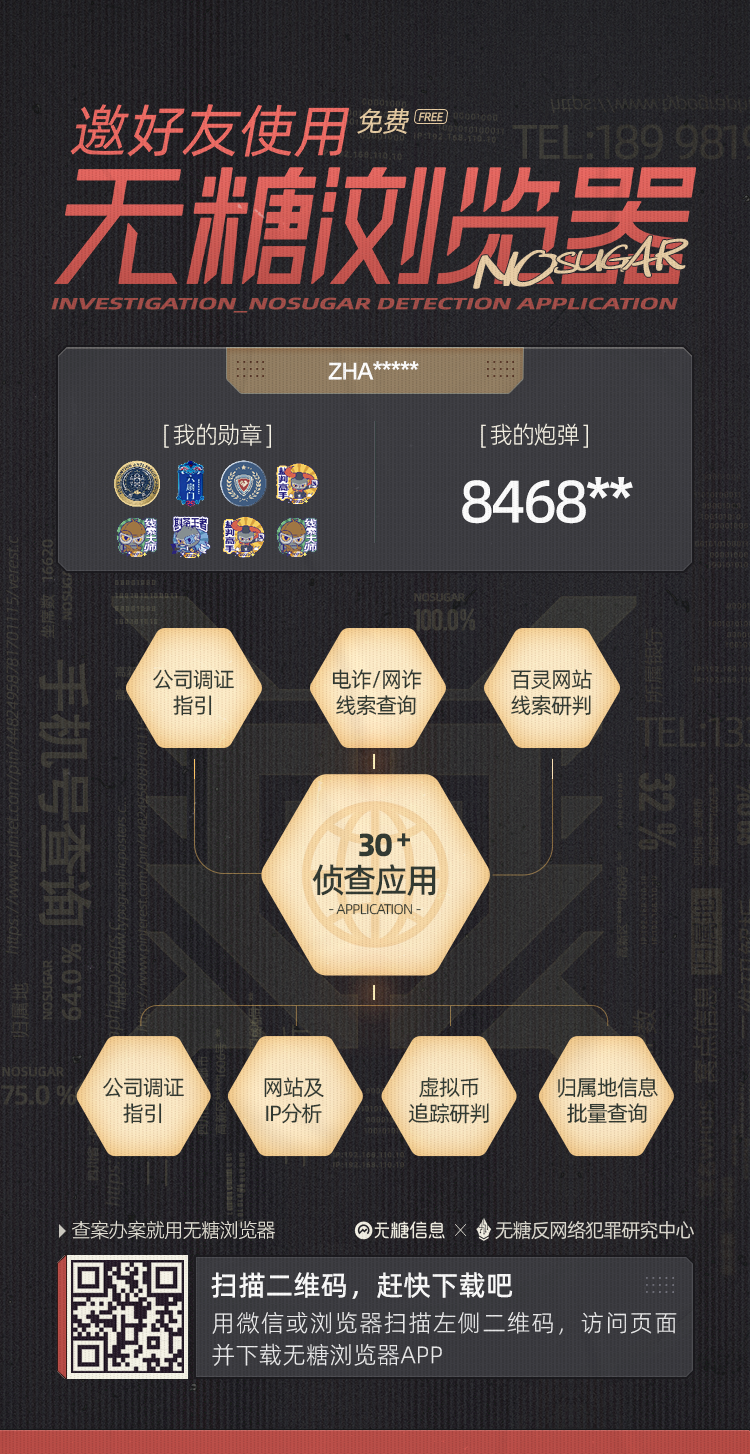 无糖信息-大狗(涉诈网站溯源打击平台):https://dagou.nosugar.tech/