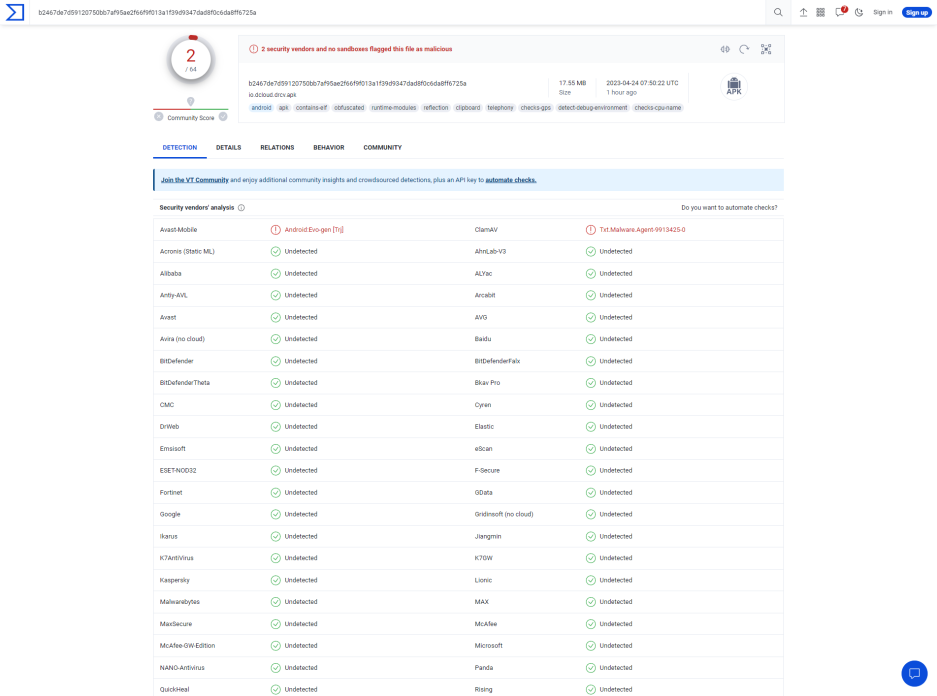 本文使用的截图均位各家分析工具的免费版,一些功能的分析仅供参考,实际案件还是得自身实际使用后进行评估,不同的APK分析工具都具有自己的特色,我们上传同一个APK进行分析,具体通过下面的内容来看看吧。
