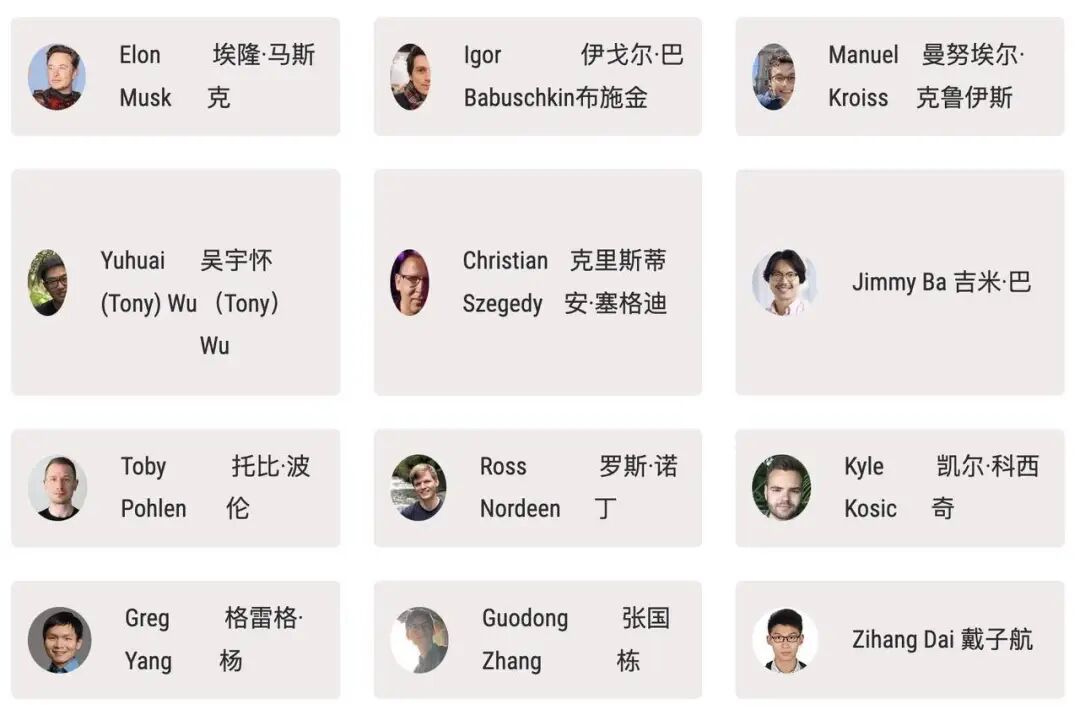 3️⃣ 庞大的知识库:Grok AI 使用了一个886.03 GB 的数据集「The Pile」,以及使用 X 平台上的Exabytes 数据进行微调,知识量惊人。4️⃣ 语音就绪:它的输出和提示都支持语音交互、语音识别和回应。5️⃣ 图像生成:Grok AI 计划包含图像生成功能,允许根据用户的描述创造出新的图片。6️⃣ 图像识别:它可以识别和理解图片内容,增强与视觉相关的交互表现。7️⃣ 音频识别:Grok 还将支持音频识别,能够理解和反映音频信息。值得一提的是,为什么聊天机器人要起名「Gork」呢?有网友认为这是受到了罗伯特·海因莱因科幻小说《异乡异客》中的「Gork」概念的启发。这番说法也得到了马斯克的盖章定论。在书里海因莱因发明的火星语言中,「Grok」的字面意思是语气词「喝」,但却有着深刻的意义,象征着理解、共鸣和人际关系等深层意义,而不仅仅是表面或智力上的同化。因此,选择将 AI 助手命名为「Grok」也充分表达了马斯克对人工智能在理解和交流方面的愿景,希望人工智能能够超越机械的信息处理,真正理解人类的情感和需求,实现更深刻、更直观的人机交互和理解。年初,The Infomation 就曾报道马斯克正在积极「招兵买马」,意图筹建一个新的研究实验室,以推出 ChatGPT 的劲敌。xAI 的官网也详细介绍了拥有 12 名核心成员的初创团队。除了马斯克以外,其他 11 名成员的以及他们的背景分别如下:Igor Babuchkin: