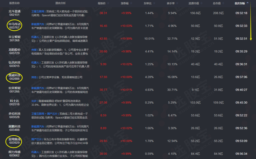 如机器人的中马传动等,消费电子的惠威科技,半导体的亚翔集成,几乎都在早盘就完成涨停任务了。