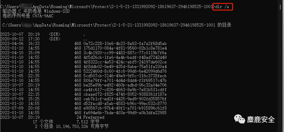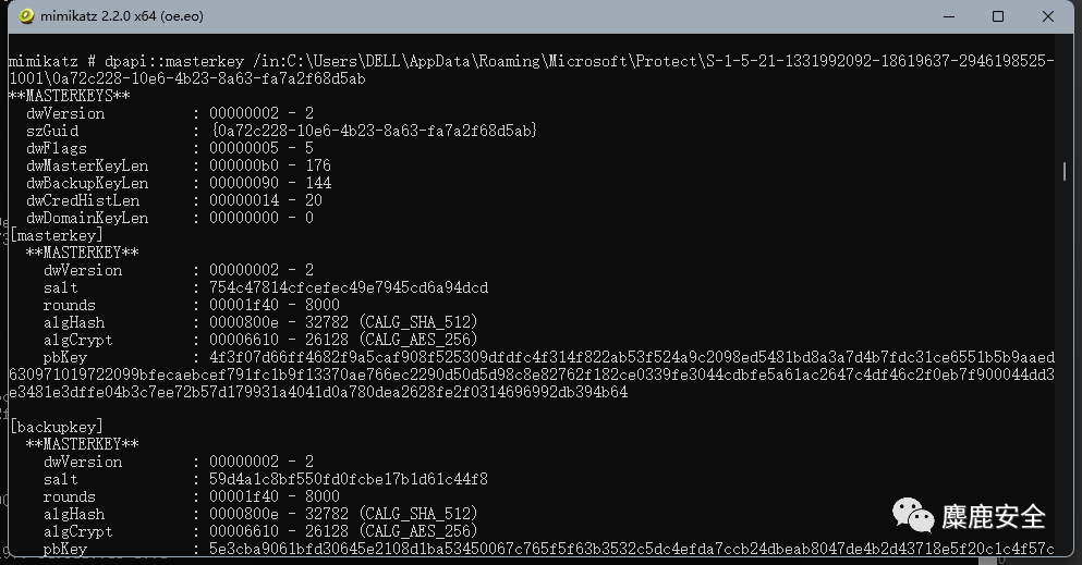 Dpapi采用的加密类型为对称加密,所以只要找到了密钥就可以解密了,而存放密钥的文件为Master Key Files,位置为%APPDATA%/Microsoft/Protect/%SID%