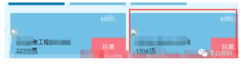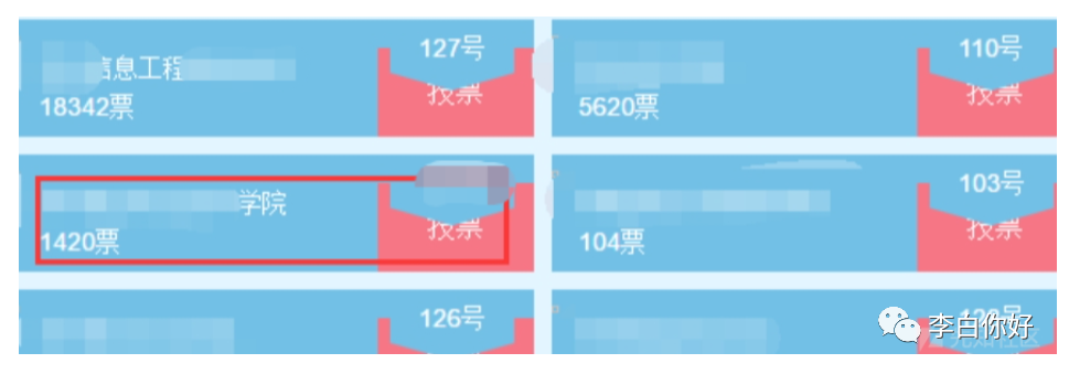 打开看了下,我们学校才第三,1000+票,第一名 2W+(xxx信息工程xx)