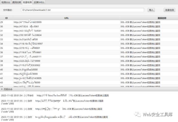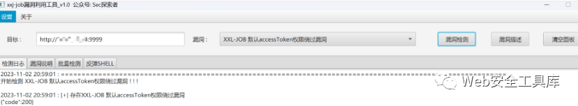 工具实现了XXL-JOB默认accessToken权限绕过漏洞的单个检测、批量检测、一键反弹shell功能,后续会持续更新优化,添加POC检测等。