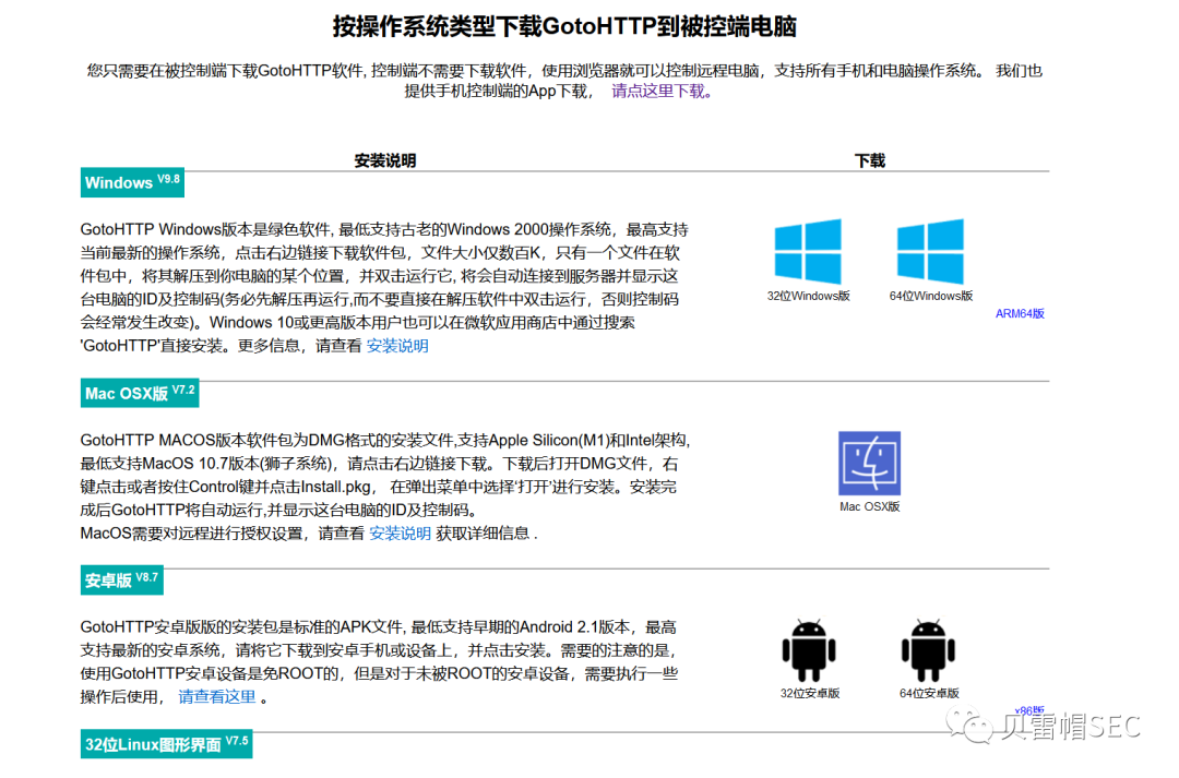被控端在类Linux系统上支持图形界面(GUI)和字符界面(CLI)。