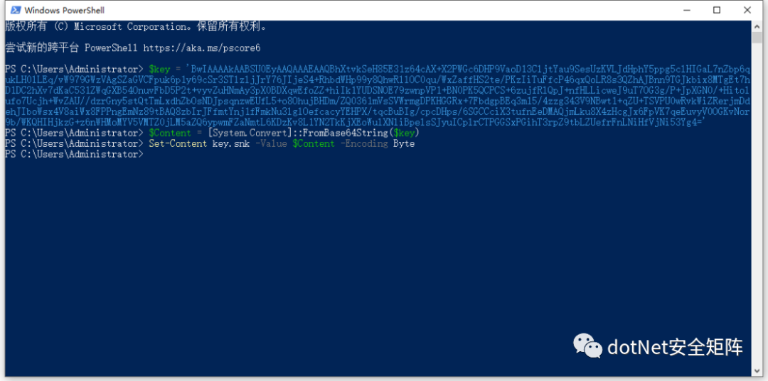 使用 Set-Content 将字节数组 $Content 保存到名为 key.snk 的文件中。如下图所示