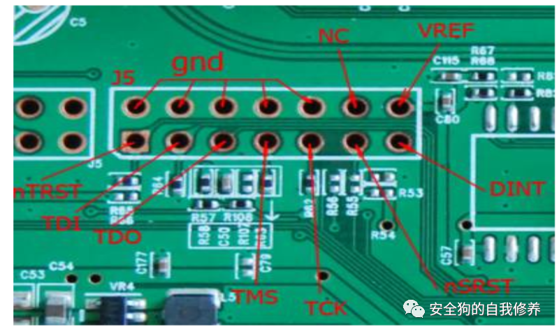 我们首先需要识别硬件上相应的端口引脚,以便通过JTAG/SWD端口与器件进行交互。下面是几张图片,显示了硬件上大多数JTAG端口测试点/引脚排列的外观。
