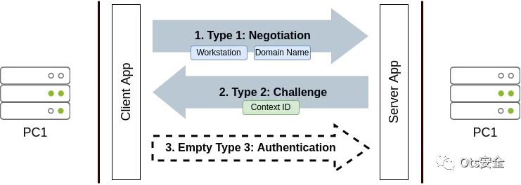 数据包 1:类型 1 消息 在此初始步骤中,客户端通过向服务器发送数据包来启动身份验证过程,协商身份验证条款。或者,该数据包可以包括客户端计算机的名称及其域。收到数据包后,服务器可以验证身份验证请求是否来自不同的机器。