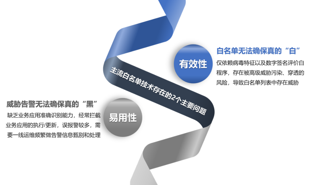 工业企业资产数字化易遭受病毒及恶意代码的侵扰,应用程序白名单适用于工业领域病毒防范是全球共识,工业各领域均以程序白名单技术作为病毒防范的首选方案,随着数字化转型的推进以及高级威胁渗透加剧,主流程序白名单产品面临着被穿透、污染,无法满足安全性及易用性需要的难题。