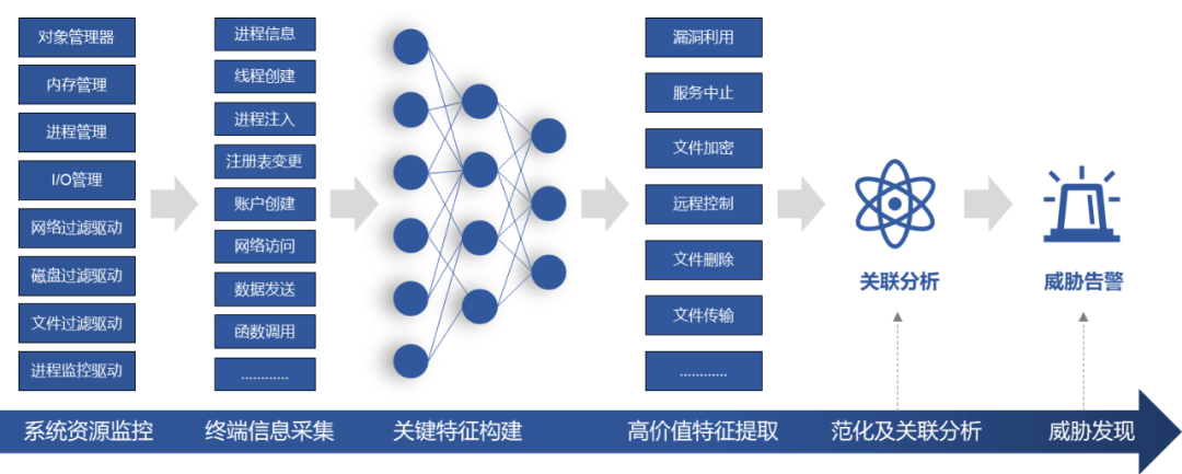 威努特关基版工控主机卫士通过全面采集工业终端静态和动态信息,结合关联分析、深度学习、聚类分析等大数据分析技术,对工业主机进行长期持续的检测分析,无需特征库即可识别潜在的安全威胁,帮助关基及工业企业有效应对高级持续性威胁。