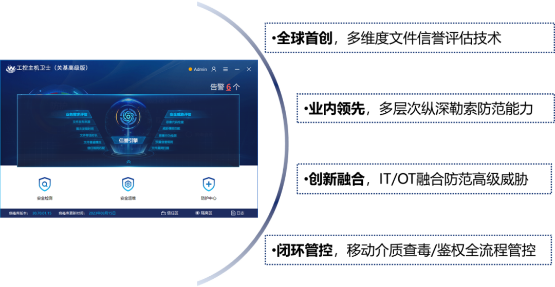 威努特关基版工控主机卫士全球首创文件信誉技术,集成自主研发、业内领先的勒索防范能力,创新融合高级威胁行为检测及运维介质闭环管控技术,实现安全且高效的应用管控,可靠与精准兼顾的威胁检测,切实有效的勒索病毒防范,完整闭环的运维介质管控,能够帮助关键信息基础设施以及工业企业有效应对包括勒索攻击、挖矿病毒在内的高级持续性威胁.