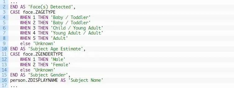 研究人员找到的每个模块执行不同的SQL数据库查询。例如,有一个模块处理来自knowledgeec .db数据库的应用程序使用数据。另一个模块提取与照片相关的元数据,例如照片中是否有孩子,该人是男是女(见下图),以及从媒体文件中自动生成的文本。
