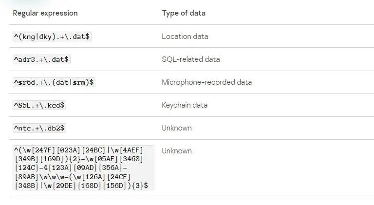 具有这些名称的文件包含由模块产生的执行结果。这些模块通过CRXUpdateRecord和CRXRunRecord命令上传到受攻击的设备。