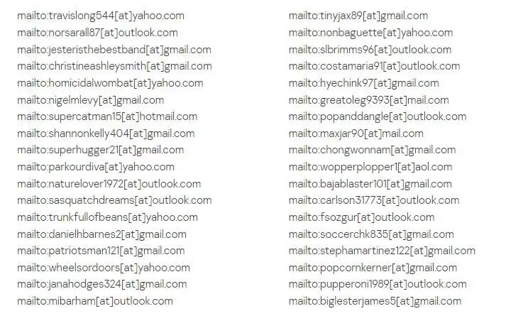 2.在各种数据库(如ids-pub-id.db或knowledgeec .db)中搜索恶意iMessage附件的痕迹,然后删除它们。为了能够做到这一点,验证器的配置包含40个用于发送恶意imessage的Apple id的MD5哈希值。研究人员成功破解了大部分哈希值,从而获得了攻击者控制的苹果ID电子邮件地址列表: