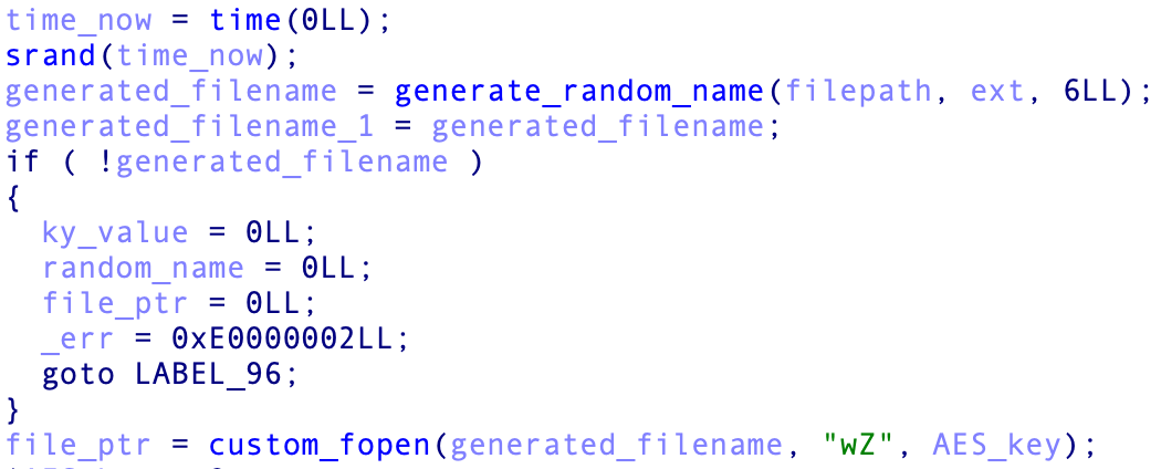 这些模块的代码相当奇特,例如,攻击者在fopen()函数周围实现了一个包装器,添加了Z标志(表明创建的文件应该经过aes加密和zlib压缩),并与标准w(写)标志结合使用,如下图所示: