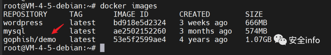 docker ps 查看启动的gophish/demo容器