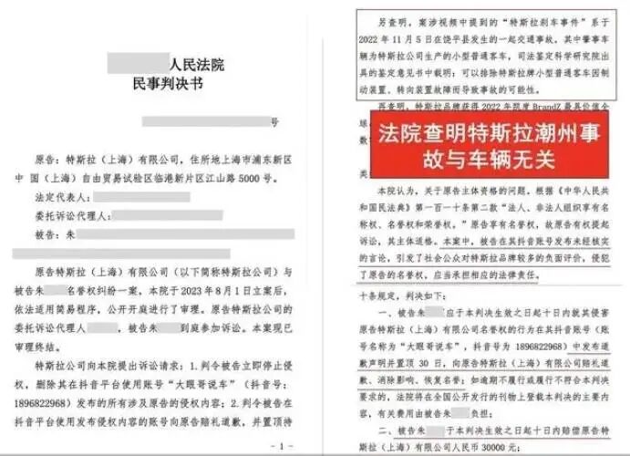 时隔一年,潮州特斯拉撞车事件有了结果。在最近特斯拉诉某自媒体名誉侵权案中,法院判决特斯拉胜诉。判决书显示,根据司法鉴定结果,特斯拉潮州事故原因与车辆本身无关:可以排除特斯拉牌小型普通客车因制动装置、转
