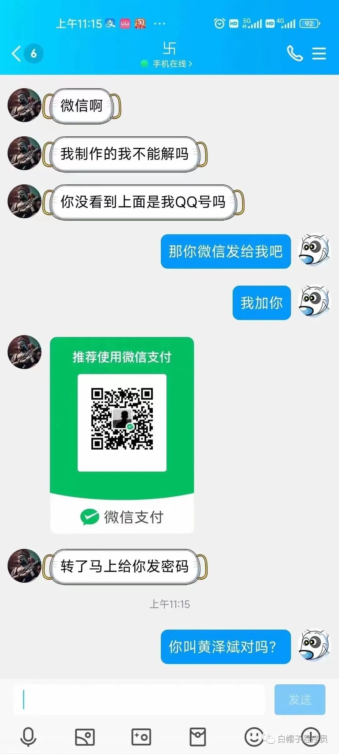 加了勒索金主Q,对方要求转账,转账确认姓名