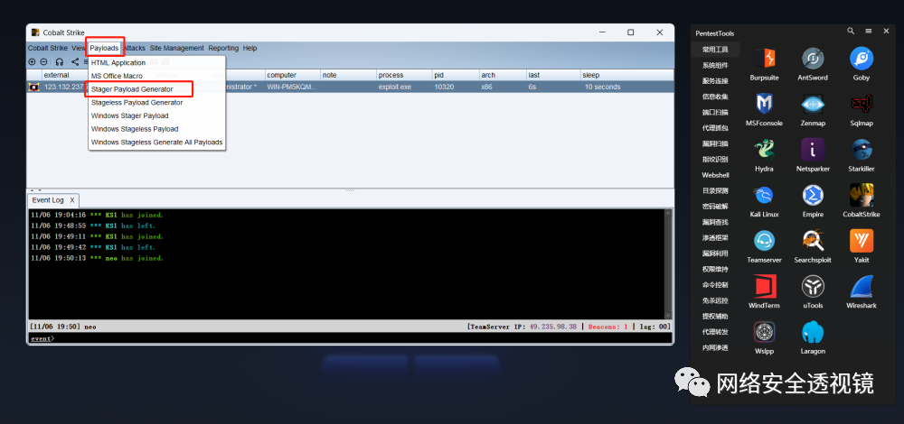 Cobalt Strike是一款美国Red Team开发的渗透测试神器,常被业界人称为CS。其拥有多种协议主机上线方式,集成了提权,凭据导出,端口转发,socket代理,office攻击,文件捆绑,钓鱼等功能。同时,Cobalt Strike还可以调用Mimikatz等其他知名工具,因此广受黑客喜爱。