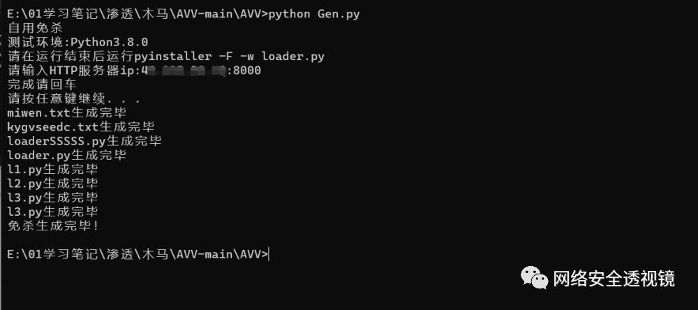 注意测试时候,不要专门用杀毒软件单独扫描生成的木马,或者将生成的木马上传到云端沙箱检测,这样过几天就不免杀了。木马生成后,复制粘贴杀毒软件不报毒基本上就OK了。