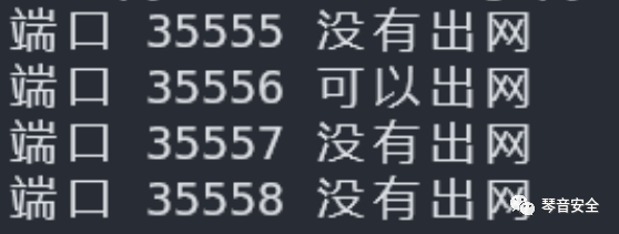 这种情况下,我们首先需要找到是哪些端口可以出网,这时候就需要一台公网vps,我们可以在vps上监听请求,用目标机器去对vps的端口进行连接,也就是端口扫描,看目标机哪个端口可以向主机进行连接,那么这个端口就出网。