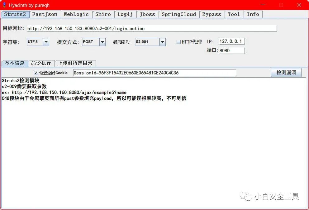 漏洞聚合工具其中包含Struts2、Fastjson、Weblogic(xml)、Shiro、Log4j、Jboss、SpringCloud、等漏洞检测利用模块,及免杀webshell生成模块 Bypass、以及一些小工具模块!