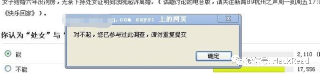 2) 排除第一种情况,换个浏览器即可重新投票,或者清理下缓存即可重新投票
