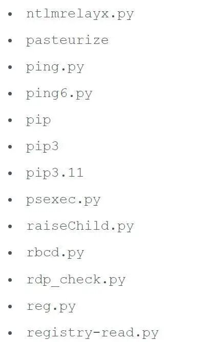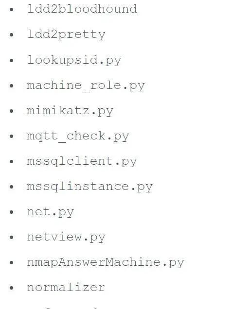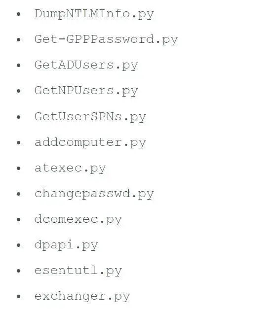 攻击者可以使用上面的许多Python脚本进行横向移动、密码转储和在受害者网络上进一步执行恶意软件。