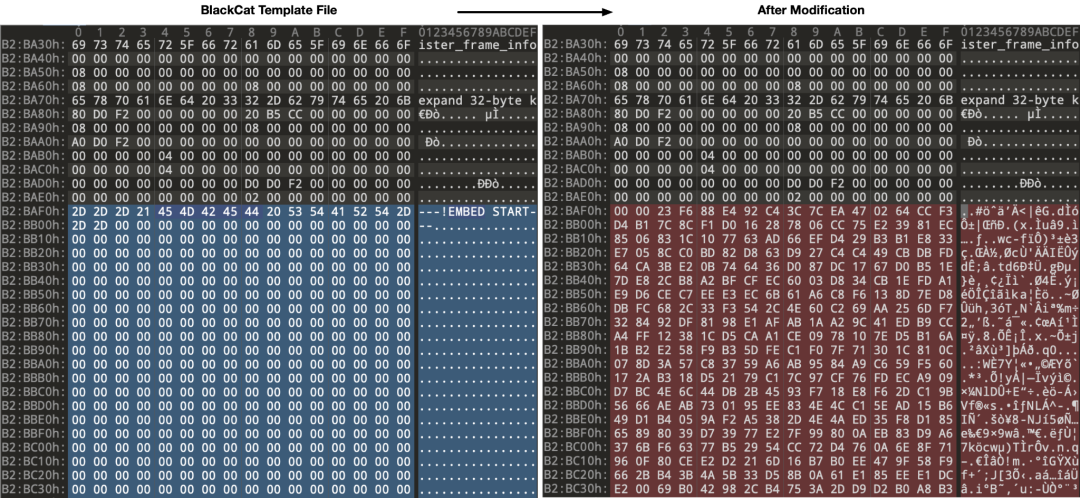 解析配置后,控制器创建并挂载/payloads/目录,用于托管随后创建的BlackCat样本。控制器使用前面提到的/app/payload作为模板来创建自定义的BlackCat样本。在模板文件中,控制器在修改该文件时查找并使用特定的标记。
