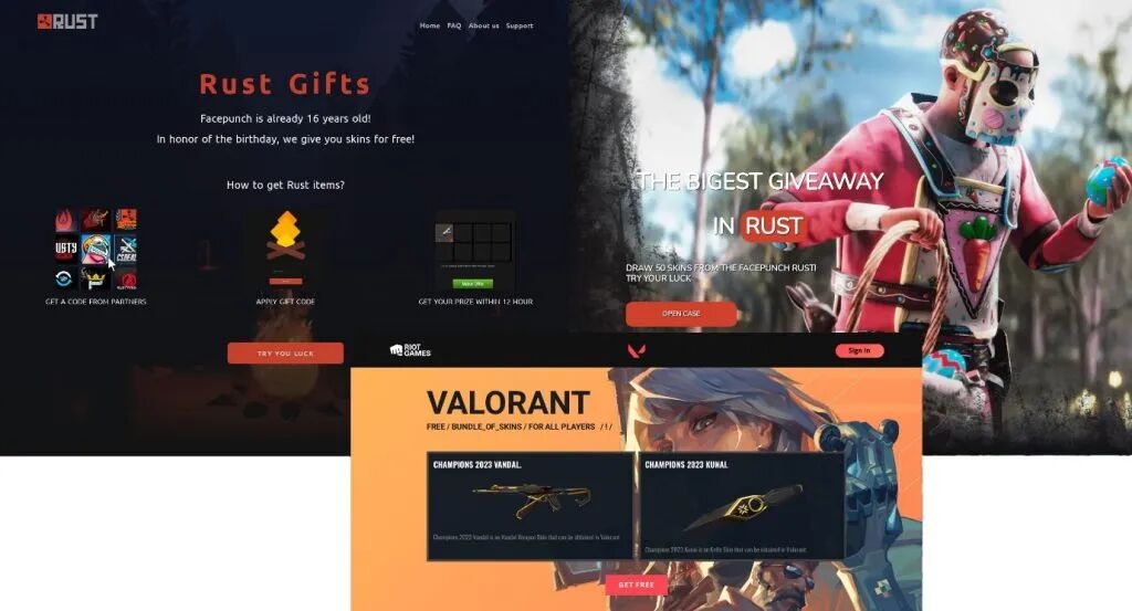 值得注意的是,最常见的攻击方式有:伪装成第三方免费游戏(以及游戏相关组件)下载网站、声称免费赠送游戏皮肤或其他物品、声称提供热门游戏的大幅度折扣等,游戏玩家遇到这几种情况需要分外小心。
