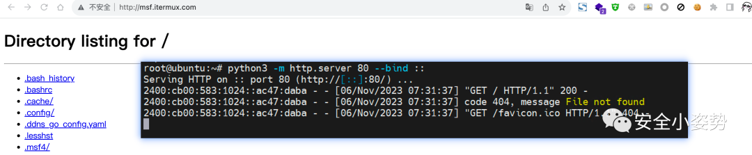 然后直接访问我们的 msf.itermux.com 域名测试成功访问: