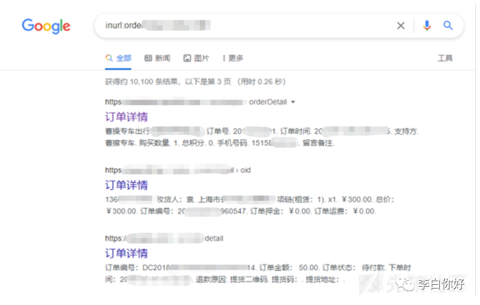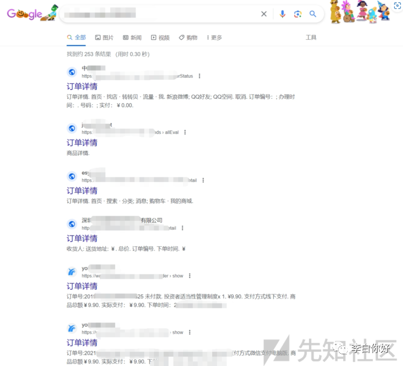 然后同理google搜索 inurl:domain intitle:订单详情,思维跳跃一点