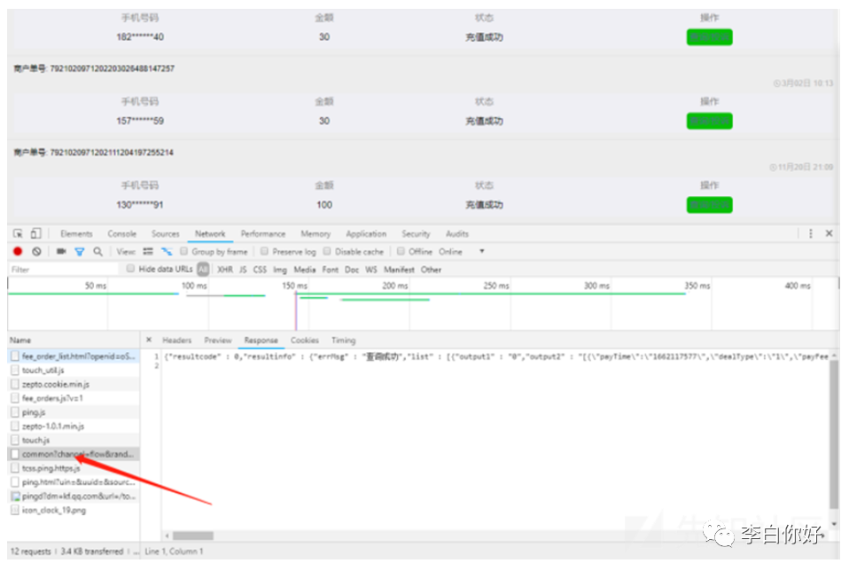 数据包信息如下(下面泄露的手机号均为修改后的手机号):