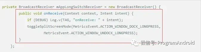 自定义接收广播后,onReceive处理事件实现分屏方法如下: